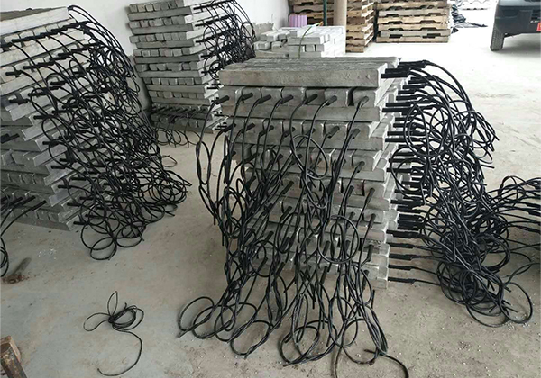 以上的鎂合金犧牲陽(yáng)極也可以經(jīng)組裝后提供給客戶。裸陽(yáng)極首先和電纜連接,連接部位 用環(huán)氧樹(shù)脂密封。然后加填充料封裝在棉布袋里。