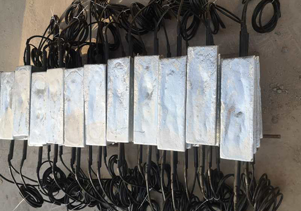 根據(jù)電化學(xué)原理,從鎂合金陽(yáng)極材料體上通過(guò)土壤、水等電解質(zhì)向被保護(hù)體如鋼質(zhì)結(jié)構(gòu)提供陰極電流,使被保護(hù)的鋼質(zhì)結(jié)構(gòu)進(jìn)行陰極化,實(shí)現(xiàn)陰極保護(hù)。隨著電流的不斷流動(dòng),陽(yáng)極材料不斷消耗掉。這就是犧牲陽(yáng)極名稱的由來(lái)。 成套鎂犧牲陽(yáng)極,由鎂犧牲陽(yáng)極錠1支,一根VV-10㎜2電纜3米,填包料50kg,棉布口袋1條,塑料編織袋1條組成。即棉布口袋內(nèi)有鎂犧牲陽(yáng)極錠1支其鐵芯上焊VV-10㎜2電纜3米1根,焊接處做絕緣處理,并套有熱縮管。鎂犧牲陽(yáng)極錠周圍均勻分布50kg填包料。棉布口袋外套塑料編織袋1條。