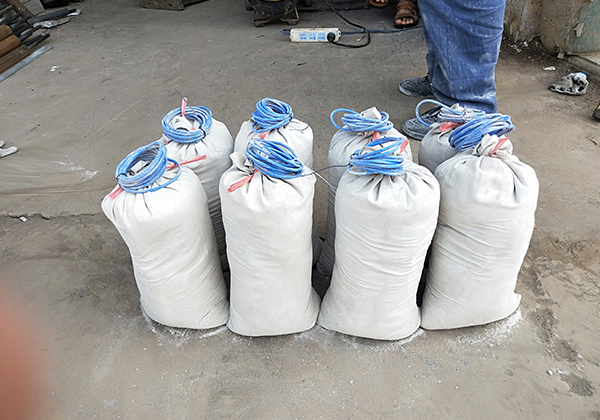 2)將埋有電極的回填料袋,埋入預先挖好的埋設坑中,并將周圍土壤壓實,隨后向埋設地點澆灌適量的淡水,以改善電極連接狀態(tài)。
